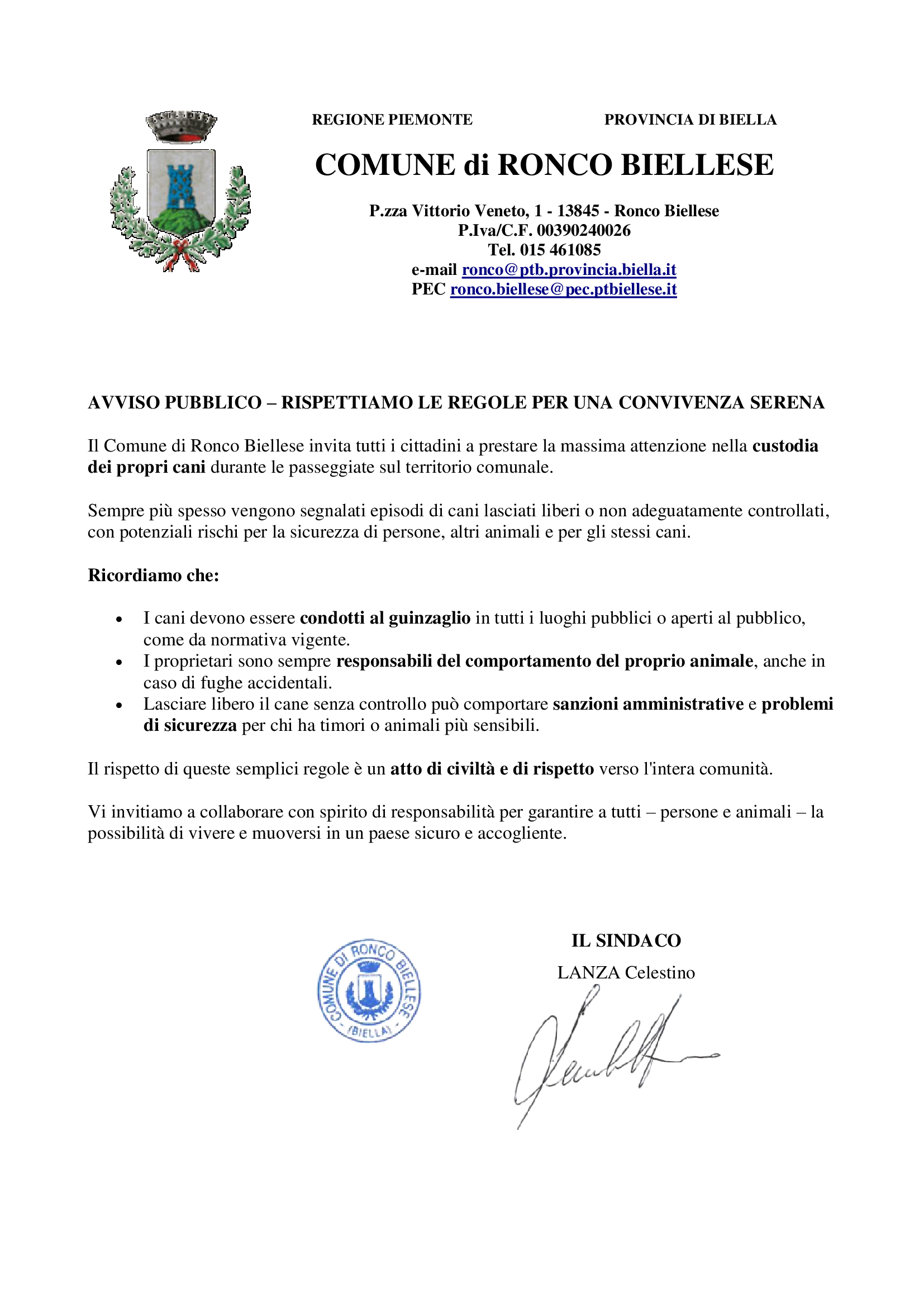 Avviso pubblico - Rispettiamo le regole per una convivenza serena